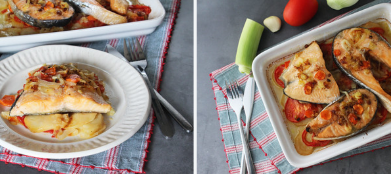 Wenn ich normalerweise ein Rezept für gebackenen Fisch vorbereite , gehe ich fast immer zum Lachs, weil es zu Hause immer gelingt, die ganze Familie mag es.