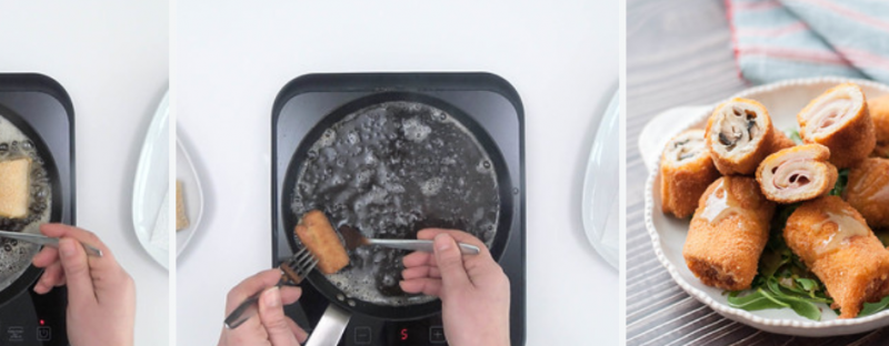 - Wenn wir alle Brötchen vorbereitet haben, erhitzen Sie viel Öl in einer Pfanne und braten Sie sie bei mittlerer bis hoher Temperatur.