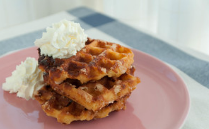 Wie man hausgemachte Waffeln mit Sahne macht .