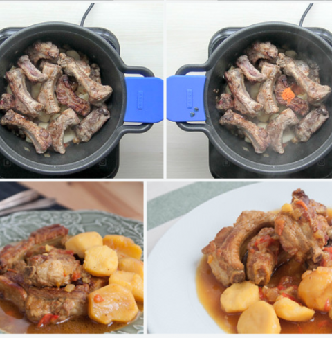- Wir bräunen auf beiden Seiten und reservieren. Ich habe Schweinebraten für dieses Rezept verwendet, aber wenn Sie keinen hausgemachten Schweinebraten haben.