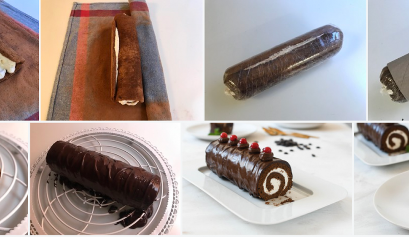 - Wir rollen den Lappen sofort auf und machen eine Rolle mit dem Kuchen (der Lappen muss im Kuchen gerollt werden) und lassen ihn vollständig abkühlen.