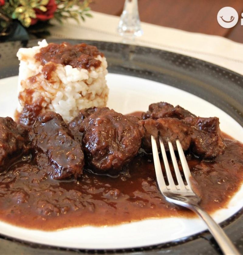 - Dieser Teller mit Schweinebacken in Rotwein sollte mit etwas weißem Reis oder einfach mit ein paar guten Brotstücken der Sauce serviert werden, die herrlich ist.